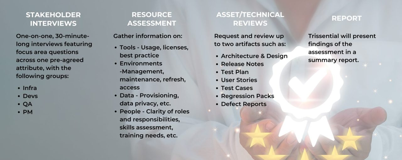 Trissential’s Quality Assurance Assessment Taster is a half-day session, working with one of our Senior QA Practice Directors to: